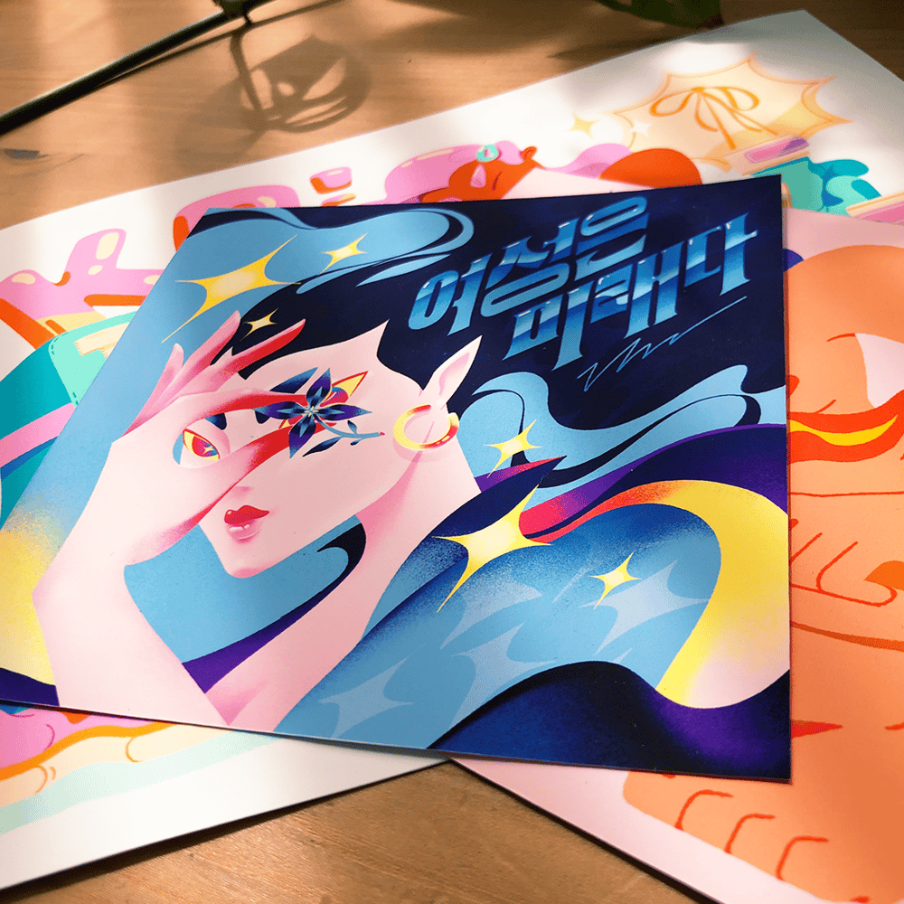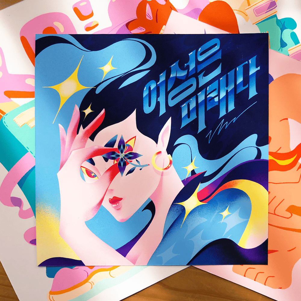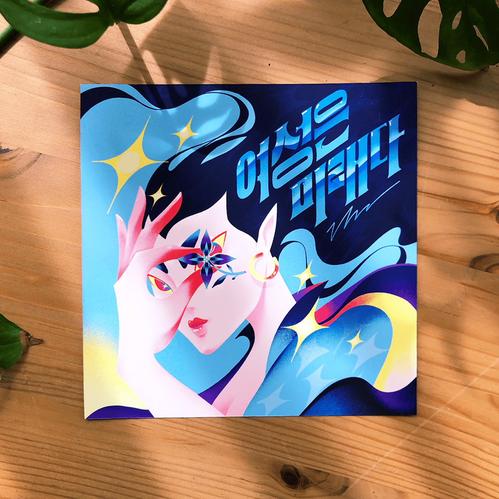 Super vibrant mini Femme the Future print. Perfect for your home office space for the ~vibes~. 5" x 5" square. S/O to my Korean friend who actually knows Korean for the language help (thanks Lew). Printed on archival matte paper to stay bright forever.