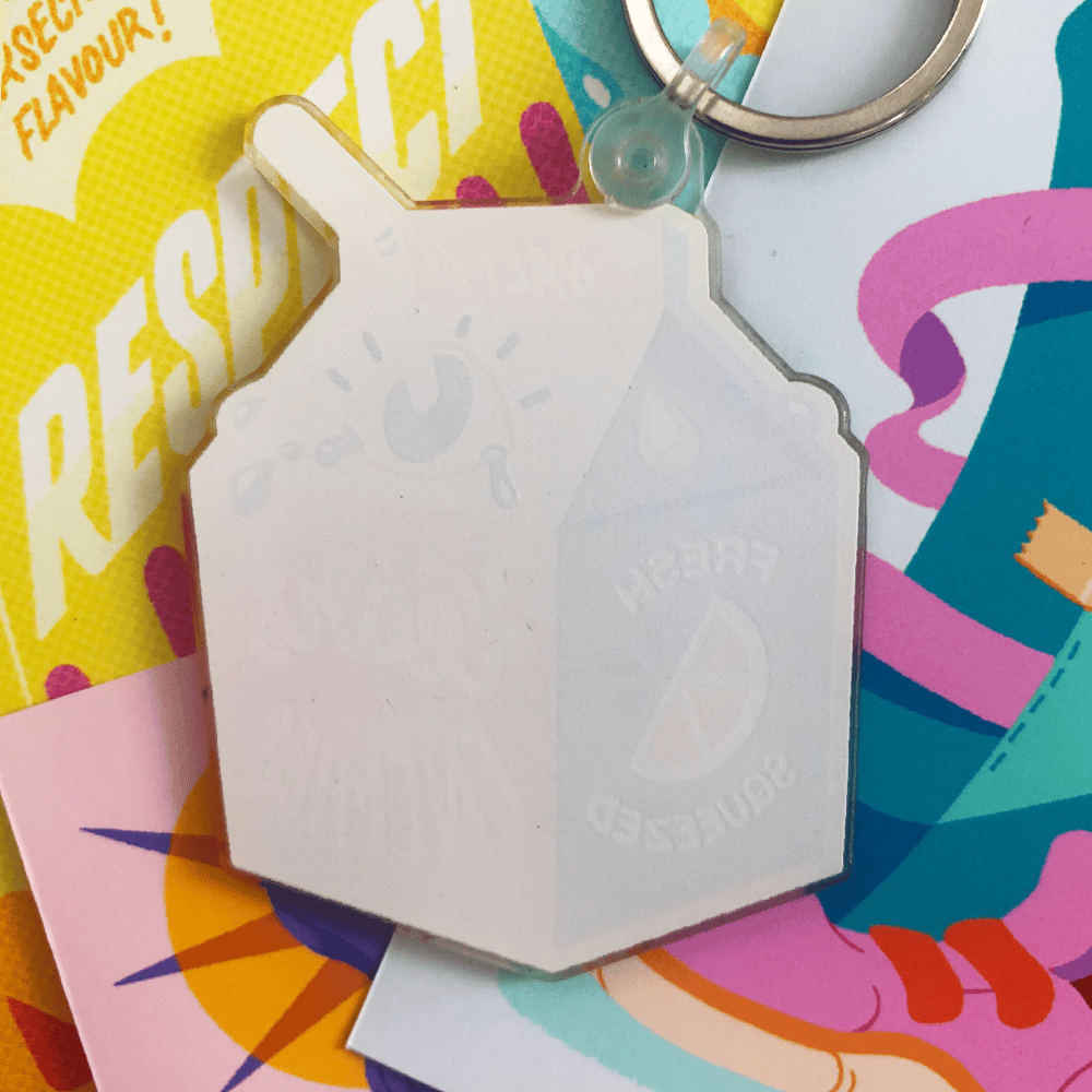 Clear acrylic keychain of the fan-favorite Tears of My Enemies carton ✨Intimidate passersby with this cute and vaguely menacing keychain. Approx. 2.25" x 3" so you'll never lose your keys again. These didn't turn out quite like I wanted so they're being sold at a discount. Some edges are slightly chipped or roughened, the attachment to the key ring is plastic, and the design is on one side only. Not what I had in mind but i got em now so get em while they're here!